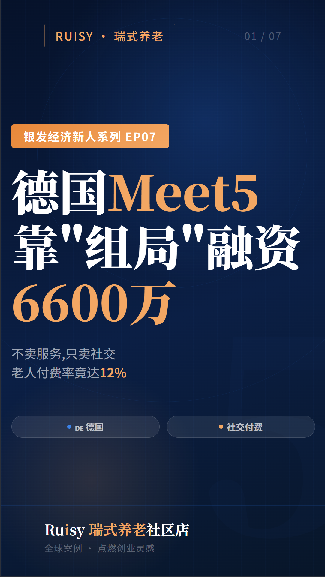 对于中国养老创业者:可以用社区活动吸引长者,再销售助浴/陪诊/健康管理等刚需服务。